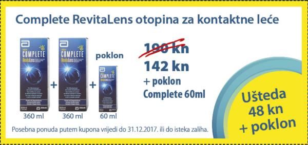 Dvije velikeCooperVision All In One Lightotopina za leće po cijeni od138 knili dvijevelike Complete RevitaLensotopine za 142 kn.