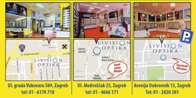 Za dodatne uštede i EXTRA BONUS za kupovinu godišnje zalihe leća posjetite jednu od Livision optika u Zagrebu:
