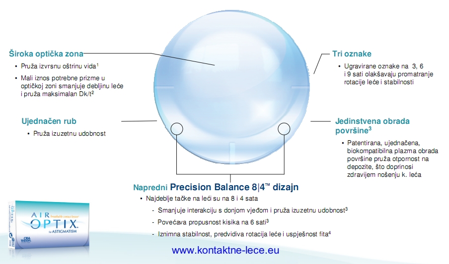 Air optix za astigmatizam koriste napredan torični Precision Balance 8|4 dizajn koji nam omogućava: