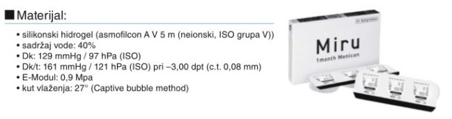 Silikonski hidrogelne kontaktne leće za astigmatizam - MIRU 1 MONTH MENICON.