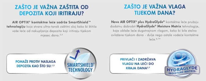 Patentirana AIR OPTIX tehnologija leće koja je dokazala SJAJAN VID I UDOBNOST CIJELI DAN, SVAKI DAN.