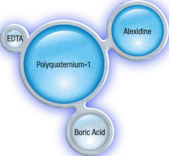COMPLETE RevitaLens MPDS formula je četverodijelni interaktivni sustav sastavljen od dva dezinfekcijska sredstva (Polyquaternium-1 i Alexidine) uklopljena u dva puferska agensa (Boric Acid i EDTA) koji su među njima tampon zona.