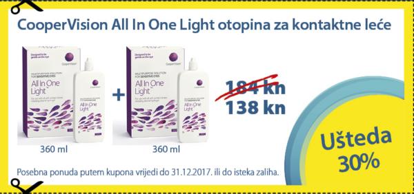 Dvije velikeCooperVision All In One Lightotopina za leće po cijeni od138 knili dvijevelike Complete RevitaLensotopine za 142 kn.