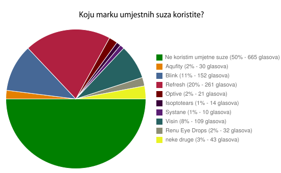 U ovom grafu vidimo da 46% korisnika svoje leće ne zamjenjuje na vrijeme. To je jedan od glavni razloga neudobnosti nošenja i upala oka kod korisnika kontaktnih leća.
